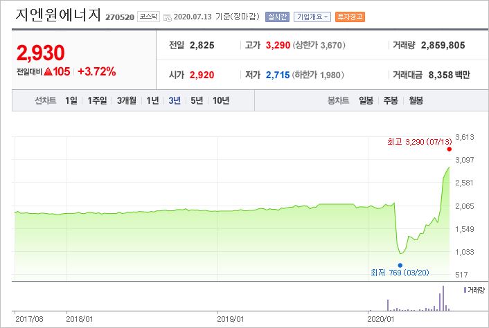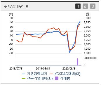 신재생에너지를 주도함에 따라 그린뉴딜의 손꼽히는 수혜주라 평가받고 있으며, 실제로 뉴딜정책의 이슈에 따라 급등하면서 현재 52주 신고가를 경신하고 있습니다.