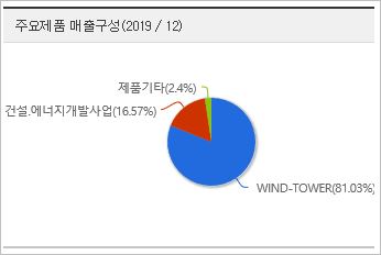 윈드타워 제품이 81%의 매출을 차지함에 따라 풍력에너지의 대표주로 떠오르고 있으며, 그린뉴딜이나 풍력에너지 이슈가 있을 때마다 급등하는 회사입니다.